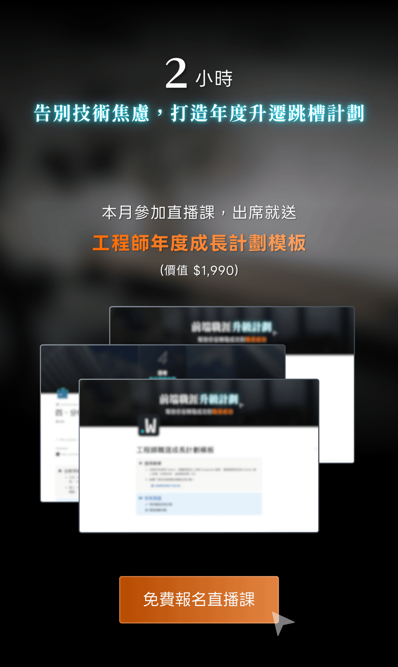 ▎當天現場參與直播的朋友,會額外獲得一份「工程師年度成長計劃模板」,不過因為會議室人數有限,記得提前卡位以免無法入場!